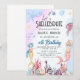 ¡Vamos a Shellebrate! Podrá sumergirse en un mar de diversión con esta encantadora Invitación al cumpleaños Shellebrate, perfecta para fiestas con temas de mar, sirena o playa. Con conchas de ajetreo, colores pastel y texto de personalizable, esta invitación marca la pauta para una lubina mágica de cumpleaños bajo el mar. Personalice con el nombre, edad, detalles del fiesta de su hijo y más para hacer olas con sus invitados.
