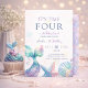 Celebra el día especial de tu pequeño con esta soñadora invitación de cumpleaños de sirena. Con colores pastel suaves, colas de sirena brillantes, conchas marinas y un elegante tema submarino, esta invitación es perfecta para una fiesta de cumpleaños mágica para niñas. Ideal para un cumpleaños número 4 o cualquier celebración con tema de sirena, esta invitación personalizable añade un toque caprichoso y encantador a tu evento.