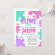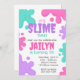 Invitación rosa, verde azulada y púrpura a la lima. Descúbrete con esta delgada invitación de fiesta con manchas de lodo, perfecta para una fiesta de cumpleaños de un chica.