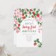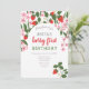 Lindo, floral rosa y rojo, verano, invitación moderna de cumpleaños número uno de fresa para la fiesta de la bebé.