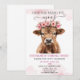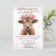 Invitación Cumpleaños de ternera Highland bebé floral rosa