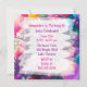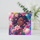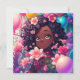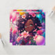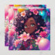 invitación personalizada de chica de cumpleaños por bonito. Cuidados gráficos de una hermosa chica de anime afroamericana con flores rosadas bonitos en su lindo cabello rizado. Estos son lindos para un chica adolescente o preadolescente. Los colores son rosa, violeta, azul y amarillo.