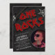 Celebrar el primer cumpleaños al estilo rock and Roll, esta invitación fue inspirada en la música rock, el título de la carta y el fondo están diseñados con un estilo angustioso para proporcionar las vibraciones clásicas Rock y Roll