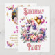 Invitación Cumpleaños de Unicornio rosa, morado y dorado de b