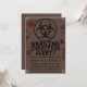 ¡Introduzca la zona de cuarentena! Este cumpleaños zombi apocalypse | Halloween Biohazard Survival Party Invitation combina gráficos de alerta de brotes, símbolos tóxicos y humor no muerto. Ideal para niños, adolescentes o adultos que quieren un cumpleaños único con temática de Halloween. Personalizar con su nombre, edad, fecha y ubicación. Se dispone de suministros de fiesta de riesgo biológico para un conjunto completo de supervivencia.