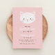 Invite a amigos y familiares a celebrar el día especial de su pequeño hijo con esta adorable invitación de cumpleaños, con un gatito dulce sobre un fondo rosado.