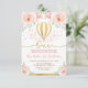 Esta acuarela magnífica femenina de las características del diseño se ruboriza rosas rosados y una imagen linda de un globo del aire caliente del oro