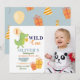 Diseño de invitación de cumpleaños del Cocodrilo Salvaje Primero perfecto para niña o niño. Incluye parte trasera.