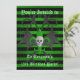 Una encantadora invitación a la personalización que tiene un cráneo con alas de murciélago y un neón verde Fleur De Lis sobre un fondo a rayas. Estas invitaciones están hechas para el cumpleaños de un adolescente, pero se puede cambiar fácilmente toda la redacción para adaptarla a sus necesidades.
