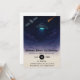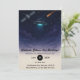 Una lúgubre carta de temática espacial con un brillante OVNI, meteorito, satélite y cielo estrellado. Colores suaves y un bonito estilo de ilustracion, perfecto para los niños.