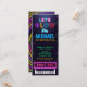 Celebra tu fiesta de cumpleaños con nuestra invitación para comprar un billete Neon Glow. El pase de boletos presenta un texto futurista iluminado con un fondo oscuro. Este moderno diseño es perfecto para una discoteca de rodillos o un fiesta brillante.