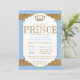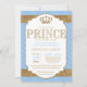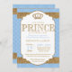 purpurina de oro, azul real. Bienvenida a un principito o celebra su cumpleaños con esta encantadora invitación real.