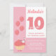 Invitación de cumpleaños con un bizcocho sonriente y rosa y globos. Esta invitación muestra el nombre y la edad del niño de cumpleaños. Todo el texto es personalizable.