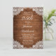 Invitación de cumpleaños con número de personalizado. Estilo rústico con un fondo de madera y decoración de encaje blanco. Hay más artículos disponibles en este estilo en nuestra tienda. Puede editar el diseño más adelante, cambiar colores, fuentes y añadir texto extra haciendo clic en el enlace "personalizar más adelante".