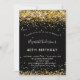Invitación Cumpleaños del purpurina de oro negro