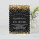 Invitación Cumpleaños del purpurina de oro negro