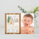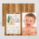 Invitación de cumpleaños número uno del salvaje uno con tipi y árboles en un fondo de madera rústica y espacio para foto. Esta linda invitación de cumpleaños número uno del salvaje uno es fácilmente personalizable para su evento simplemente agregando sus detalles. Puede cambiar el número del año al que necesite. Este es un diseño impreso sin purpurina real, lámina metálica, etc.