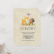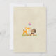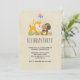 Una invitación de cumpleaños con una ilustración adorable que presenta un cervatillo y una ardilla pequeña sosteniendo una bellota y una mariposa volando sobre sus cabezas. Estas adorables criaturas del bosque están paradas sobre hierba con algunos hongos caprichosos a sus pies.