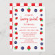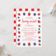 Invitación de cumpleaños dulce de frutas con fresas y arándanos con un fondo a cuadros estilo picnic.