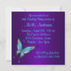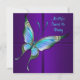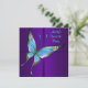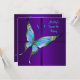 Invitación de cumpleaños número dieciséis con mariposa azul turquesa elegante y púrpura colorida.