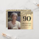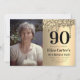Cumpleaños 90 negro, dorado, simple, foto, elegante, femenino, adulto, tipografía, brillo, glamour, acuarela. Personalízalo con tus datos.