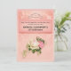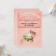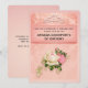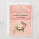 Una invitación de cumpleaños con un ramo de rosas florales con flores blancas y rosadas. Una tiara de diamantes falsos. El fondo es rosa con un patrón floral. Diseño bonito y elegante.