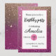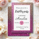 Esta impresionante invitación presenta un vibrante fondo de purpurina rosa intenso adornado con acentos de purpurina dorada glamurosa, lo que añade un toque de elegancia y brillo. Con su diseño femenino y elegante, es perfecto para cumpleaños y otros eventos de celebración. Personaliza la invitación con los detalles de tu fiesta para hacerla verdaderamente única. Prepárate para impresionar a tus invitados con esta invitación llamativa y glamurosa que marca el tono para una celebración de cumpleaños memorable y deslumbrante.
