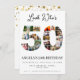 Invite a seres queridos a celebrar un hito especial con nuestra Invitación de Collage de Fotos de 50 Cumpleaños de The Arty Apples. Perfecta para la abuela, el abuelo, el esposo, la esposa o cualquier persona especial en su cumpleaños, esta invitación presenta un hermoso collage de fotos queridas en un diseño simple y elegante