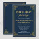Invitación Cumpleaños Fiesta Navy Dorado Art Déco