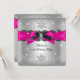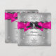 Lazo rosa caliente y encaje negro Fiesta de cumpleaños elegante, copos de nieve plateados con brillo, invitación de joya con lazo gris negro. Fiesta de cumpleaños o cambia la edad o el evento. Personaliza con tus propios detalles y edad. Plantilla para cumpleaños de cualquier edad, Dulces 16, 16, Quinceañera 15, 18, 20, 21, 30, 40, 50, 60, 70, 80, 90, 100, producto fabuloso para mujeres adultas, chicas adolescentes. Todos los diseños están registrados. Contenido y diseños © 2000-2015 Zizzago ™ ® (Marca registrada) y sus licenciantes Zizzago creó este diseño POR FAVOR TENGA EN CUENTA que todas las imágenes planas. ¡No tienen brillo real, diamantes, joyas o lazos reales