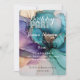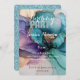 Invitación Cumpleaños Flor Púrpura Brillo Azul Acuario Dorado