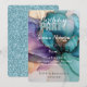 Invitación Cumpleaños Flor Púrpura Brillo Azul Acuático Dorad