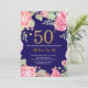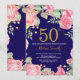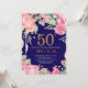 Invitación Cumpleaños floral 50 dorado brillo azul marino