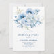 Invitación de cumpleaños floral azul. Es fácil cambiar el texto. Bonito acuarela floral.