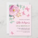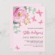 Invitación cumpleaños floral de mariposa rosa verde