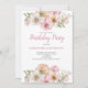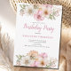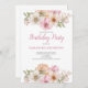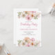 Elegante invitación de cumpleaños floral de melocotón rosa. Es fácil cambiar el texto. diseño botánico de acuarela de verano de bonito.