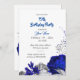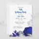 Magnífico rosa azul real y lirios con rosa plateado y flor margarita botánica invitación para cumpleaños de plata. Los detalles del purpurina se simulan