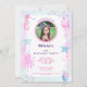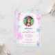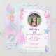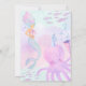 Esta invitación de cumpleaños temática "bajo el mar" linda y caprichosa presenta un pulpo, medusa, estrella de mar y caballito de mar. ¡Es personalizable con una foto de la cumpleañera especial! La parte posterior de la invitación presenta una sirena, cardúmenes de peces y un pulpo lindo.