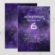 Celebra el cumpleaños de tu hijo con esta invitación de cumpleaños temática de galaxia y espacio que presenta un fondo cósmico de color púrpura profundo lleno de estrellas y nebulosas. Este diseño es perfecto para una fiesta en un planetario, un cumpleaños con tema de espacio exterior, o cualquier celebración infantil inspirada en la ciencia y la astronomía. Esta invitación de cumpleaños espacial moderna es ideal para niños y niñas que aman los planetas, estrellas, galaxias y el universo. La tipografía futurista mantiene el aspecto elegante y sigue siendo divertida y adecuada para niños. La invitación es totalmente personalizable, lo que te permite personalizar el nombre, edad, fecha, hora, ubicación y detalles de RSVP. Se puede utilizar para cualquier edad y funciona perfectamente tanto como invitación impresa o digital.