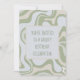 ¡Es la época de cumpleaños retro groovy! Divertido, rápido, patrón trippy en tonos verde sabio, con texto de cumpleaños modificable.