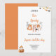 EL CUMPLEAÑOS HALLOWEEN DISFRUTABLE FIESTA VIBE INVITATION Cute Halloween fiesta de cumpleaños invitación con Spooktacular escrito en una combinación de fuentes divertidas, los dobles en el escarabajo diseñados para lucir como ojos grandes. El texto está rodeado de estrellas, arañas y un murciélago. Y un bonito fantasma les dice a sus invitados el nombre y la edad del niño de cumpleaños. La parte posterior presenta rayas coincidentes en negro, blanco y naranja.
