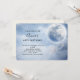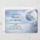 Invitación de fiesta de cumpleaños con un cielo azul escénico y nublado con una luna grande y hermosa. 2 cisnes blancos volando juntos. Diseño de fantasía mágica.