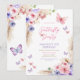 Invitación de cumpleaños infantil mariposas rosa y morado