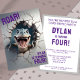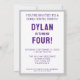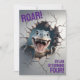 Invitación genial de cumpleaños para niños con un adorable bebé t-rex que rompe una pared para anunciar una celebración de cumpleaños dino-rífica. Perfecto para el cuarto cumpleaños de un niño, pero la edad es editable.