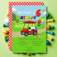 Invitación Cumpleaños lindo de 6 años en carrito de golf rojo