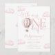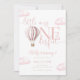 Esta encantadora invitación de cumpleaños número uno presenta un globo aerostático rosa y nubes, junto con tipografía de letra elegante. Diseñado por Thisisnotme©