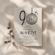 Cumple 90 años con estilo con nuestras invitaciones de cumpleaños modernas y elegantes. Nuestro diseño presenta una bola de discoteca dibujada a mano única que forma el '0' en el número 90, estrellas retro dispersas y una plantilla de fiesta informal en una fuente manuscrita emocionante, todo sobre un fondo blanco atemporal. Esta invitación especial fusiona diversión y elegancia, un verdadero reflejo de lo que significa cumplir 90 años.