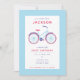 Invitación Cumpleaños moderno azul y rojo en bicicleta