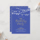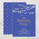 Celebra un día especial con esta elegante invitación de cumpleaños dorada. Este diseño presenta luces de cadena y una tipografía de guión dorado elegante con un fondo azul morado. Puedes personalizar el texto para cualquier edad o cumpleaños importante. Más invitaciones y suministros para fiestas de cumpleaños de adultos están disponibles en mi tienda BaraBomDesign.