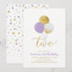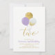 Invitación Cumpleaños niña 2 años globos morados y dorados